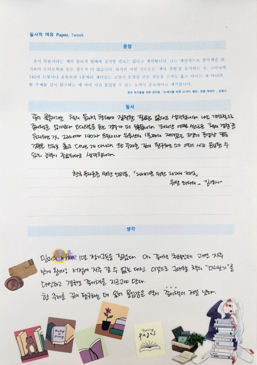 밀리의 서재 1년 정기구독을 질렀다. 아, 종이책 취향인데 과연 자주 보게 될까? 서점에 자주 갈 수 없는 대신 이것으로 구매할 책의 “미리보기”를 대신하고 결국엔 종이책을 지르고야 만다. 한 주제를 깊이 탐구하는 데 있어 몰입감은 역시 종이책이 제일 낫다.
