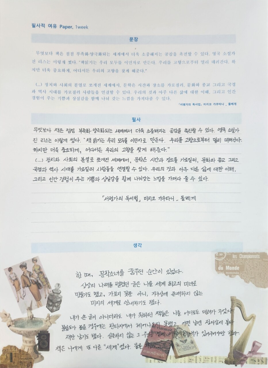 한 때, 문학소녀를 꿈꾸던 순간이 있었다.
